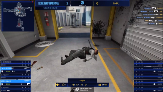 随后双方有来有回,上半场比分完美复刻了图一的10:5,SHPL拿下十分转换到防守方,一路领跑直达赛点局。在赛点局中,SHPL状态过于放松,GrabbitS大胆前顶被秒,suz在T厅对枪失败,最终SuperGOD一打二,先从黄房的烟中摸出来秒掉锦江徐锦江,但是自己也被隐匿在后方的July刀掉。嘻哈战队这波不亏,队友虽然死了,但是“我赚钱”就完事儿了。