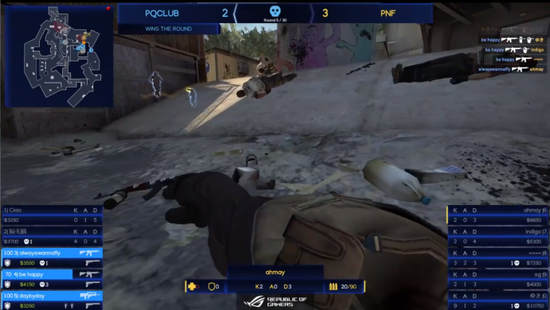 上半场的最终比分锁定在PQ8-7PNF,下半场双方身份互换。第一局手枪局中,PNF的ahmay和yuki一起作为门神蹲点,左边门神yuki先手开枪吸引火力,诱敌深入被击杀,右边门神ahmay与P250人枪合一,精准定位四枪四头,再一个迅速转身点掉PQ最后一人,收获五杀!