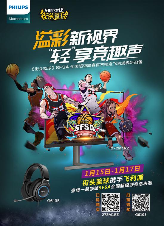《街头篮球》SFSA全国超级联赛总决赛将于1.15-1.17火爆开战,16支顶级大神战队集结杭州争夺代表FS最高荣誉的总冠军,总决赛期间观看直播赢极品观战礼包,支持自己喜欢的阵营还有机会额外获得奖励,飞利浦将携全新猛腾M1系列电竞显示器272M1RZ以及猛腾系列电竞耳机G6105鼎力相助,助力选手们火力全开,共同见证最强之冠。