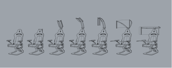 按道理来说这款产品的范畴已经不属于电竞椅了,毕竟谁家电竞椅还带OLED大屏幕啊。官方称这款概念产品为多功能游戏座舱。设计语言继承了不久前发布的风神电竞椅,大面积采用坚固的碳纤维框架及高密度泡棉。仅一张电竞椅的大小,就能够将卧室变成一个功能强大的娱乐场所,听起来着实是让人流口水。