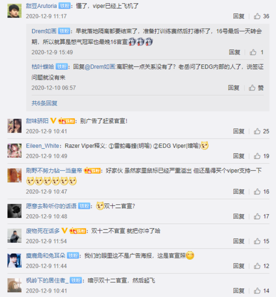 值得一提的是,Viper的这一ID与EDG合作伙伴雷蛇的鼠标“毒蝰”(Viper的中文名)竟是一样的意思,这也是Viper的下路搭档Meiko在LPL赛场上所使用的鼠标。其实EDG战队无论是对于Meiko使用的Viper鼠标还是Viper选手本人都早已有过暗示了。回想在去年双十二之际,EDG的一条微博瞬间引来无数网友的热议,网友们纷纷在微博留言:EDG已经在明示引进Viper了;好家伙双十二直接官宣了;懂了,Viper已经上飞机了,EDG新赛季起飞.......事实正是如此,Viper在新赛季正式加入EDG并且让队伍在赛季初期顺利起飞了。