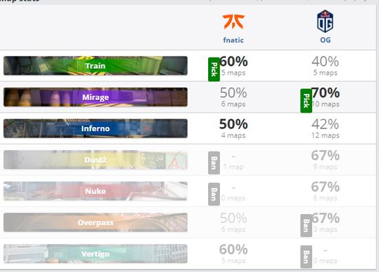 fnatic 2-1 OG(Train 16-9;Mirage 11-16;Inferno 19-17)