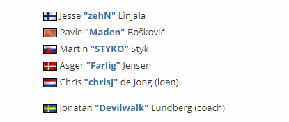 FPX的赛场首秀将于周三正式开启,届时他们将征战1月DH公开赛,与BIG、HellRaisers和EG一起身处A组。chrisJ加入后,FPX阵容如下: