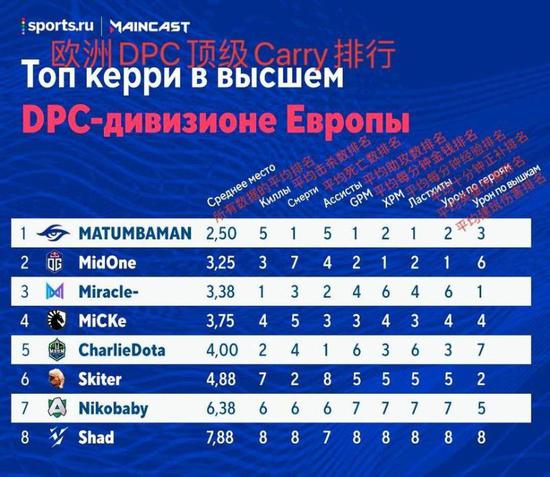 近日,Sports.ru和Maincast发布了欧洲区DPC第一赛季S级联赛首周的选手排行