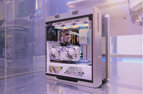 搭配引人注目配色明亮的ROG STRIX GeForce RTX™ 3080 WHITE显卡,纯白优雅的配色设计,助力玩家打造白色主题的电竞硬装。这款显卡的性能超群,可为游戏玩家和创作者带来令人惊叹的视觉效果、惊人的高帧率和AI加速功能,4K游戏更是手到擒来!同时, ROG STRIX HELIOS太阳神白色版机箱也凭借白色的配色吸引了不少玩家们的目光,搭配ROG STRIX LC小白龙RGB一体式水冷散热器,和ROG STRIX 雪鹰850W金牌全模组电源,带来了白色全家桶的高颜值组合,深受玩家们的喜爱!