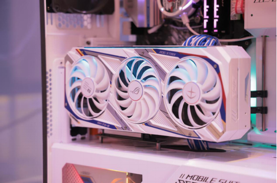 显卡也同样采用了ROG STRIX GeForce RTX™ 3090机动战士高达版显卡,其拥有着经典的配色,整体造型设计来源于经典高达RX-78-2,主色调为白色,表面增加了红黄蓝经典高达配色,搭配神光同步信仰灯效更是显得尤为闪耀!显卡采用全新NVIDIA Ampere架构,性能强劲专为满足发烧友对极致性能的需求,新一代24GB GDDR6X的高速显存,运行速度高达19Gbps,可实现前所未有的显存性能,并助力玩家在4K分辨率下畅玩光追游戏无压力!