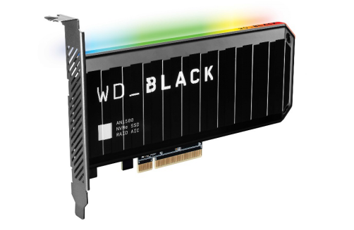 WD_BLACK AN1500 NVMe 扩展卡型SSD – 可启动且即插即用的扩展卡型SSD是采用8通道PCIe Gen3,可以提供高达6500MB/s1的读取速度和高达4100MB/s1的写入速度(2TB和4TB容量版本),带来疾速的游戏体验。 可自定义的RGB灯效(仅限Windows)能为游戏玩家的当前设备带来增强的视觉效果,集成的散热片则可减少热节流,从而有助于保持设备的顶尖性能表现