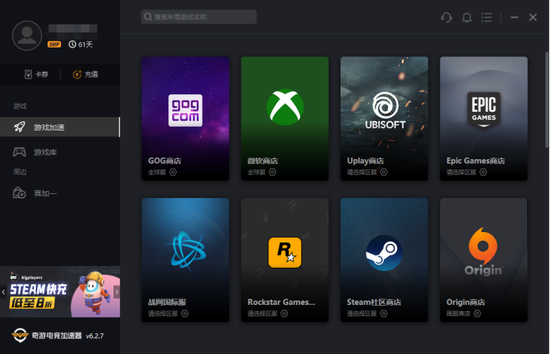 首先我们要明确的是,Steam、Epic国服商店优化效果较好,登录和游戏下载都不存在太多问题,所以大多数加速器效果大同小异,但Origin、Rockstar、微软、战网国际服需要加速器才能登录,甚至在账号注册环节就需要加速支持,否则无法完成注册和登录,而Origin、微软、战网国际服这三个平台的游戏下载速度极慢,如果你家网络是100兆,可能下载速度就1-2MB/S。能解决以上各种问题的加速器非常少,笔者经过多次尝试和亲测,给各位推荐奇游加速器,奇游在平台加速这个领域整体加速体验效果非常棒:
