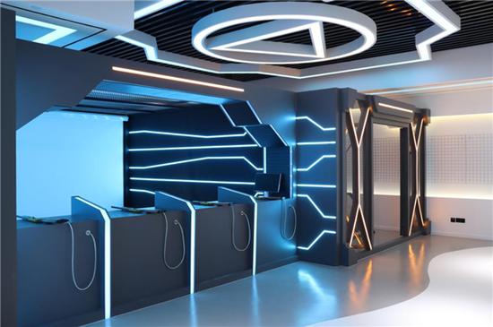 当四块地图拼在一起,时空玩家即可开启虚拟宝藏,玩家们可以在这里使用叠影拍照系统来留念。这部分区域是电竞体验的休闲区,墙面打造LED光纤墙,顶面科技彩绘吊顶,整体风格看起来更加轻松活泼。