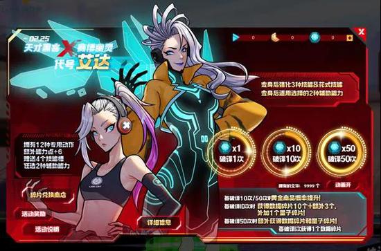 抽取道具时会获得“数据碎片”,用于兑换道具以及新角色艾达。