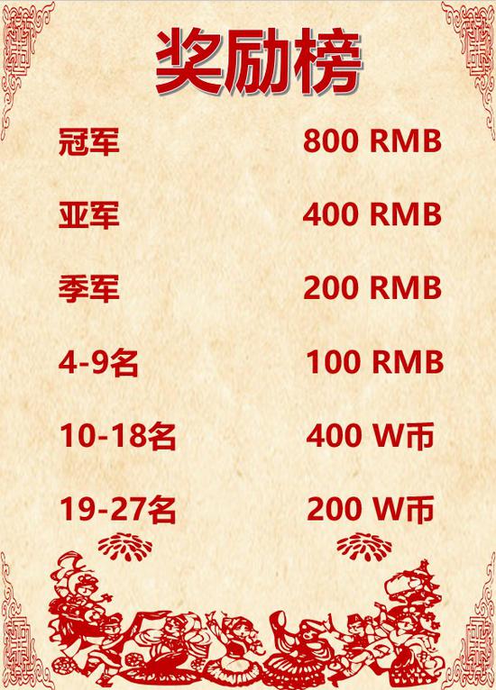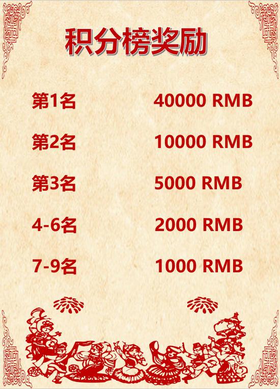 春节期间将会依据每位选手的在比赛中的排名情况进行积分排名,根据具体排名发放奖励,积分榜冠军可获得4万元(税前)的高额奖励!