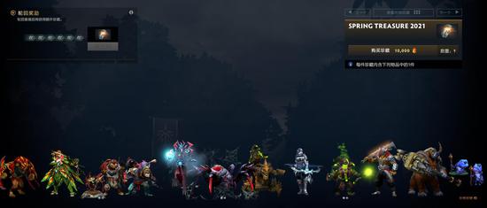 2021年初春赛季珍藏已经推出,可以通过碎片购买。仅对刀塔Plus会员开放,珍藏内有血魔、风行者、发条技师、斯拉克、巫妖、育母蜘蛛、沙王、卓尔游侠、帕格纳、主宰和马格纳斯的全新套装。另外还有几率解锁信使“蝾螈阿芒”,信使自带棱彩和虚灵宝石。