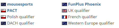 ropz和队友想要晋级到BLAST春决要走很长的路这两只欧洲队伍根据他们的世界排名获得席位,而MINISE和他的队友们则是通过赢下PEL(Polish Esport League)获得的席位。剩下的五支队伍分别要通过剩余的地区预选赛晋级:波兰、DACH(德国、奥地利、瑞士、列支敦士登)、英国、法国、以及西欧预选赛。
