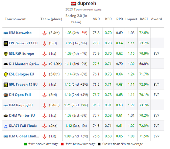 dupreeh 2020年赛事数据