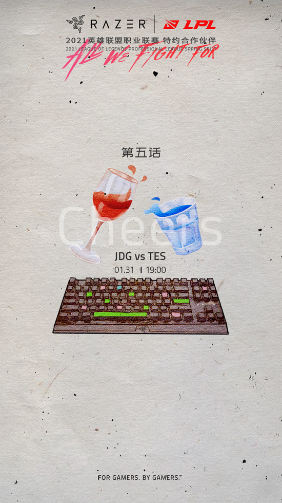 在此次TES与JDG的大战前夕,LPL新赞助商雷蛇发布了一张赛前的海报,在图中红酒杯与水杯碰撞水花飞溅。在雷蛇的战前海报中,红酒杯无疑意味着JDG上单公爵Zoom的上流社会了,水杯则是TES下路AD选手Jackeylove的代名词了,雷蛇海报的朴素画风让人简单明了。其实这已经不是雷蛇的第一次LPL海报了,回想雷蛇此前的宣传海报中,JDG曾不敌雷蛇战队EDG惨遭失利,Mystic儿子小树苗在线抓阄成焦点;FPX与IG的大战,在Ning人和Tian桑选择休息后,新一代选手的交锋比博人传更燃。这一张张宣传海报,无不一一见证着新赞助上雷蛇对于当前LPL联赛的关注度与专注度。那么这一次,当红酒杯碰上水杯,不一样的颜色,不一样的阵容,在雷蛇的竞燃下又会擦出怎么样的火花呢?