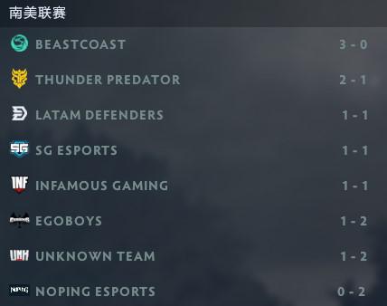 南美联赛的其他战队目前积分都十分接近,通过之前的比赛可以看到Infamous和Thunder Predator也是Major席位的有力竞争者,南美联赛其余的队伍的选手都不太为观众所熟悉,不知道借由本次DPC联赛的机会,他们是否能像2018-2019赛季的汉堡喵一样通过精彩的发挥闯入大家的视野。