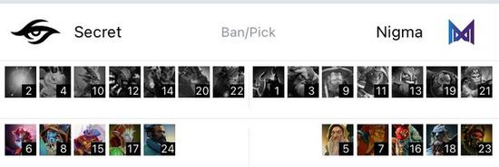 Secret天辉,选择拍拍紫猫大牛三核,辅助是拉比克和帕克。Nigma夜魇,选择水人末日黑贤三核,辅助是小牛和先知。