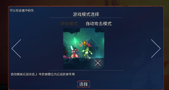 在游戏模式上,《重生细胞》拥有原生模式和自动攻击模式。在原生模式下,玩家需要自己一招一式的去击杀敌人;在自动攻模式下,玩家需在1号武器栏装备近战武器,便可自动攻击敌人,这意味着玩家只需要进行翻滚跳跃等操作就能够灭掉敌人。