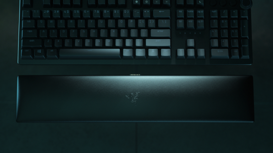 猎魂光蛛V2模拟光轴键盘是最终极的Razer Chroma RGB幻彩灯效基地。继承了其前辈的步伐,这款键盘在底部环绕式氛围灯的烘托下绚丽无比——包括无边框且微微前倾的磁吸附皮质腕托。