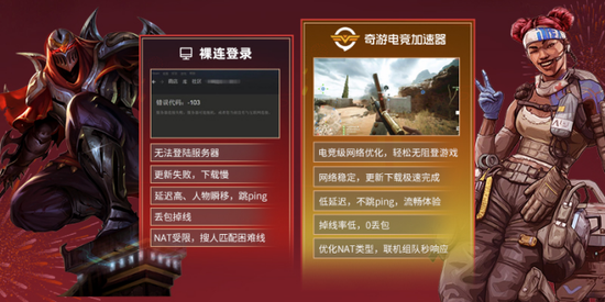 新春首发好礼,2月9日-2月13日,奇游电竞加速器将为《英雄联盟PBE美测服》、《GTA5》、《使命召唤17:黑色行动 冷战》、《Apex英雄》、《AVA台服》、《战地1》、《战地5》、《人间地狱》、《NAB2K21》9款PC大作开启新春限免!下载“奇游电竞加速器”客户端,即可一键轻松为游戏加速,助你享受极速流畅的竞技快感,让你宅家开黑,快乐翻倍!