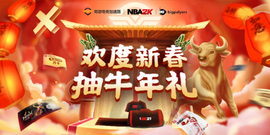 奖品丰厚,“NBA2K中国”赞助的限定篮球包、T恤、鼠标垫等周边、bigplays商城的steam充值劵、steam版《仁王2》、奇游时长卡等新春礼等你来拿,只要注册成为奇游会员,即可每日抽取,每日100%中奖!