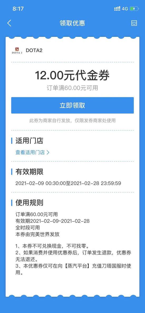 请注意,优惠券有效期截止2月28日23:59分,逾期将失效,领取优惠券后请尽快使用,不要让祈求者白忙活一场。立即打开活动页面https://act.dota2.com.cn/coupon2021 ,领取属于你的新春优惠吧!