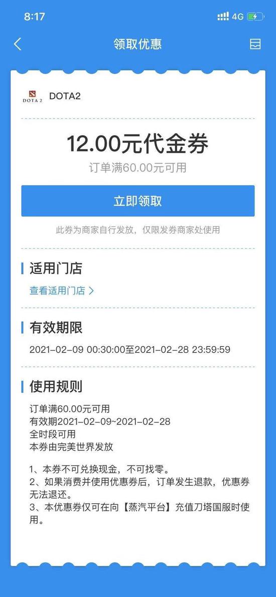 最低满60减12元、最高满300减100元的超值福利将免费送给每一位热爱着DOTA2的玩家。