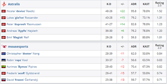 Astralis 2-0 mousesports(Nuke 16-8;Inferno 16-12)