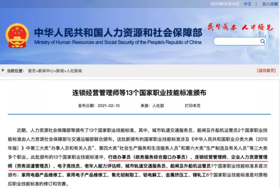近日,人社部官网发布了电子竞技员等13个国家职业技能标准,其中电子竞技员国家职业技能标准系首次颁布。
