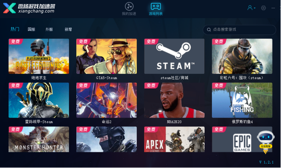 喜欢玩PC游戏,但又怕遇到网络延迟的小伙伴可以下载香肠加速器!官网下载地址为:(https://www.xiangchang.com/)【复制到浏览器下载】真正免费的网游加速器,安排!