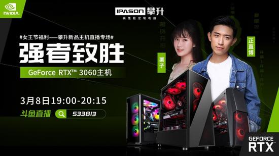 对于期望在最新游戏中体验更高细节呈现和帧率的中端用户而言,GeForce RTX™ 3060 无疑是一次极具吸引力的升级良机。想要升级全新装备的玩家可以在3月8日19:00——20:15期间,锁定斗鱼知名主播正直博直播间(房间号:533813),关注攀升电脑新品主机直播专场,GeForce RTX™ 3060主机现货开抢!