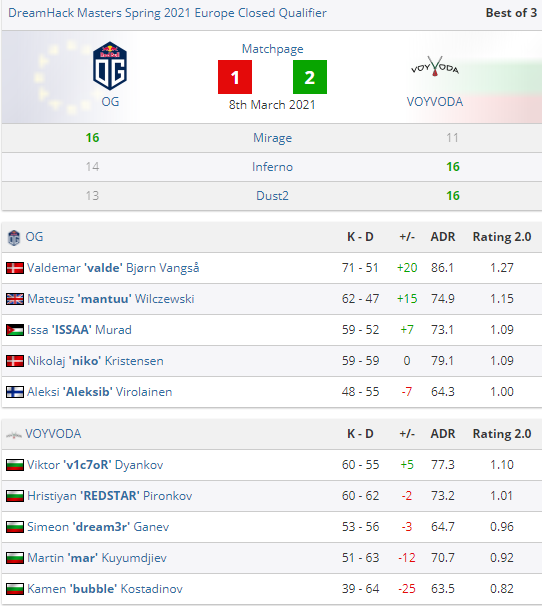DreamHack春季大师赛欧洲封闭预选赛是VOYVODA组建以来参加的最高级别赛事,他们从海选开始,一路过关斩将,击败了OG和Cloud9等强敌,仅仅输给了Heroic一个BO3,顺利挺进正赛。