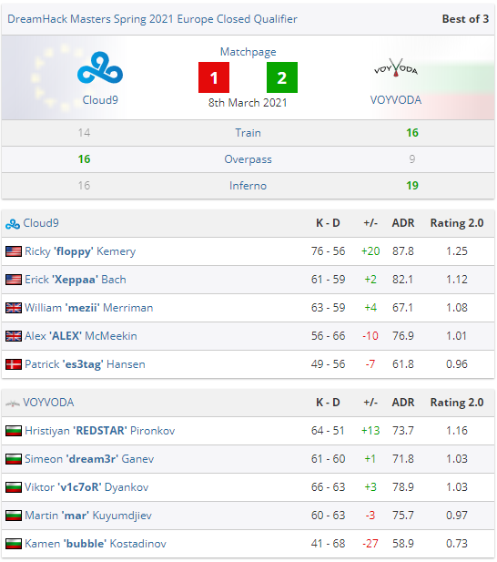 在刚刚结束的DreamHack春季大师赛欧洲封闭预选赛上,保加利亚队伍VOYVODA连斩OG和Cloud9,拿到了最后一个出线名额。至此,欧洲赛区的预选赛圆满落幕,Heroic,Complexity和VOYVODA三支队伍闯进正赛,剩余11个名额将通过直邀和北美预选的方式产生。