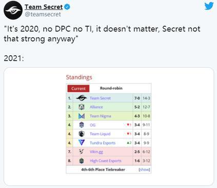 Secret战队是目前最强的战队,而且这种形势已经有近一年的时间了。在Puppey的带领下,他们以仅输三局的成绩统治了欧洲赛区,Secret看起来已经准备好要再次轻松拿下2021年的第一场Major了。