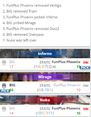 BIG 1-2 FPX(Inferno 17-19;Mirage 16-10;Nuke 14-16)