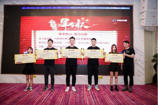 会议最后,深圳营运负责人郭龙飙、开发负责人张玉良分别带领各自团队立下“军令状”,深圳百店使命必达,全力以赴打造网鱼网咖第二个百店城市。