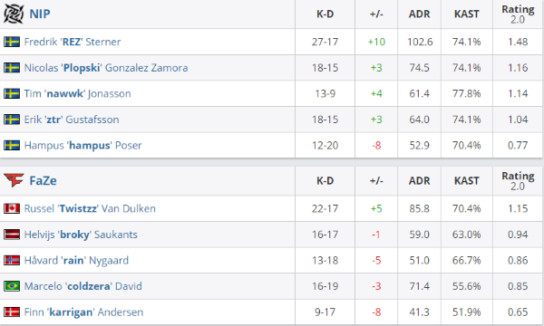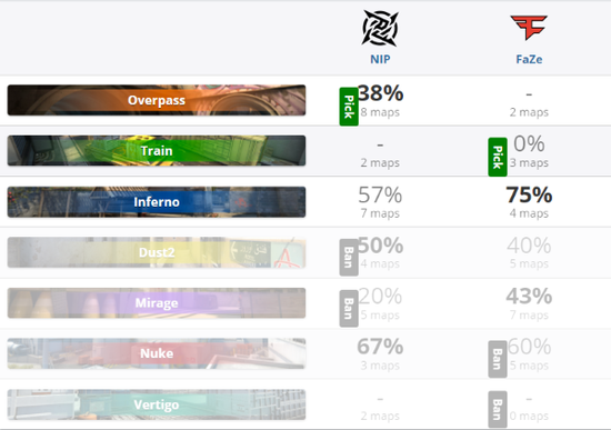 FaZe 0-2 NiP(Overpass 14-16;Train 11-16;Inferno)