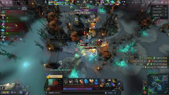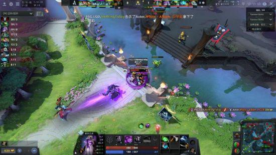 23分半,LGD在天辉下路野区遭遇Aster,蓝猫先行阵亡,先知飞后排击杀露娜,帕克缠绕三人,先知继续击杀龙骑,Aster正面无力再战,被LGD一换五团灭,打出GG。