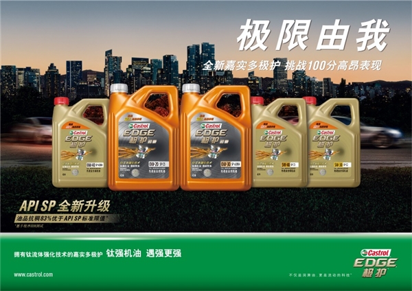 嘉实多极护继承了嘉实多家族的创新精神,洞察用户对驾驶体验的不懈追求。拥有钛流体强化技术的嘉实多极护,能够在压力之下激发更强性能表现,并减少金属间的摩擦。嘉实多极护大幅超越API SP的性能要求,油品抗稠83%*优于API SP标准限值。凭借着卓越的产品品质和强劲的性能表现,嘉实多极护行销全球超过60个国家,也成为全球主流汽车厂商推荐品牌。