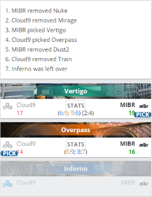 Cloud9 0-2 MIBR(Vertigo 17-19;Overpass 14-16;Inferno)