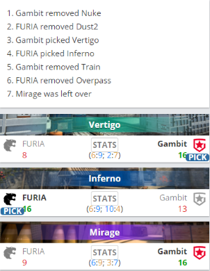 Gambit 2-1 FURIA(Vertigo 16-8;Inferno 13-16;Mirage 16-9)