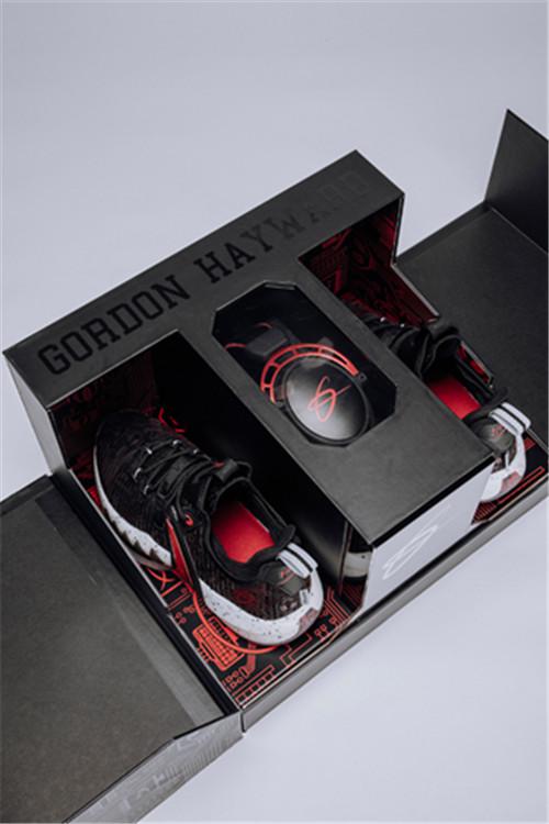 强强联手,惊喜加倍!礼盒中还有一双联名款的海沃德二代战靴——安踏GH 2,特制款采用了黑红主色,极具视觉冲击力,中底搭载了安踏最新研发的Alti-Flash发泡材料,前掌外侧加入锯齿状TPU保证稳定,在一贯的性能加持下,鞋面材料采用特殊胶印工艺,加入了耳机、键盘、鼠标、显示屏等图案点缀,立体纹路突显联名特色,电竞与篮球元素完美结合。
