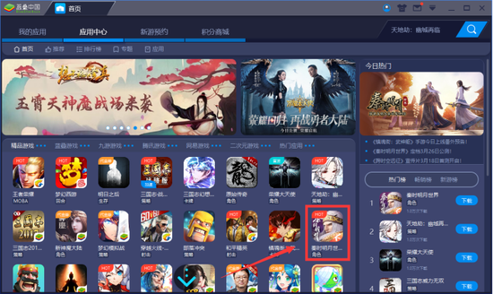 方法2:进入“应用中心”首页,通过推荐游戏,也可找到《秦时明月世界》。