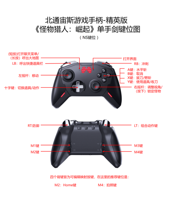 单手剑作为一个同时具有斩击和打击属性的武器,在输出和击晕怪物方面都有着得天独厚的优势,其动作反馈自然也非常优秀。作为一款动作类游戏,在游玩《怪物猎人:崛起》时如果没有一款能完美体现游戏打击感体验的手柄,那么游戏的整体操控体验将会大打折扣。小编在这里推荐玩崛起的最佳搭档——北通宙斯精英手柄。