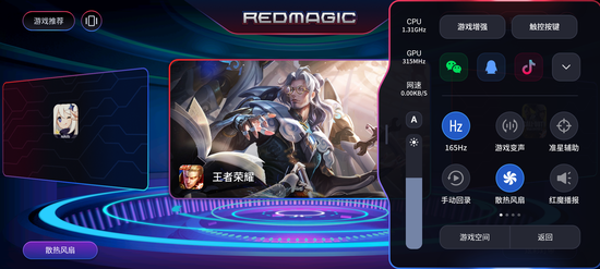 本次腾讯红魔游戏手机6的内置离心风扇转速从15000转提升到了18000转,我们拿到的6Pro版本更是有最高可达20000转的速度,风冷散热的主动介入提升机身的冷却效果。双通道风冷加液冷散热可以让红魔6在游戏时保持最大功率输出,搭配本次红魔双核散热背夹一起使用,达到最强劲的制冷效果,开启后的RGB光效还让颜值提升了不少。