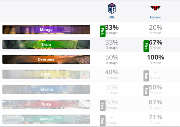 Heroic 2-1 OG(Mirage 16-6;Train 10-16;Overpass 16-6)