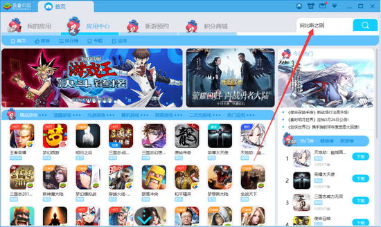 方法1:通过右上角搜索框检索游戏名,即可找到游戏安装包。