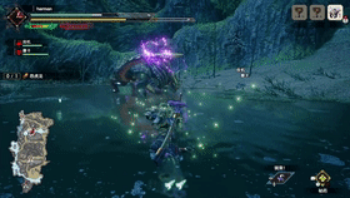 怨虎龙向身前区域用前爪进行一次拍击,鬼火状态时会有紫色范围伤害并左右爪各拍一下。