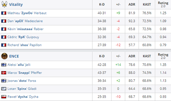 Vitality 0-2 ENCE(Nuke 10-16;Dust2 9-16)