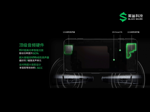 为了打造极致的音频体验,黑鲨4 系列采用了侧面双对称扬声器+超大音腔设计,这种结构保证了声场的扩展性,形成极具空间感的立体声效,让热衷“吃鸡”手游的玩家更轻松的听声辨位,同时双侧布局又很好地规避了横握时遮挡的问题。作为荣登DXOMARK音频第一的黑鲨4 Pro,选用15V 智能功放,将音腔等效体积为1.5cc高灵敏超大振幅线性扬声器的动态范围完美展现,让高品质音频得到更充分的释放,给予玩家更强的沉浸感。
